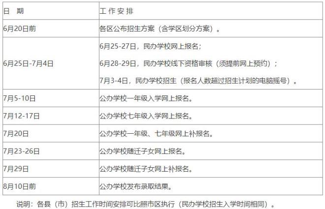 1.招生时间。公办学校招生时间从7月上旬开始,市区时间安排见附件1,四县一市可参照执行。具体时间由各县(市)、区教育主管部门安排。